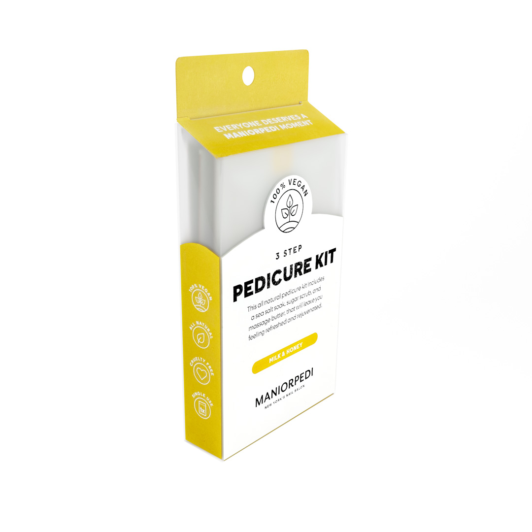 The MANIORPEDI 3 Step Peidcure Kit is the most hygienic single-use product available on the market. This kit includes a sea salt soak, sugar scrub, and massage butter, leaving your feet feeling happy and smooth. Whether for at-home use or for your customer, our product is designed to eliminate dryness, regnerate healthy skin, and deliver a moment like no other. Our ingredients are all natural, cruelty-free, and 100% VEGAN to meet the needs of all skin types. (80 unit per box)
